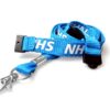 Our pre-printed lanyards are available as a stock item on next day delivery, we have a range of pre-printed lanyards in a selection of colours ready to send out. Our pre-printed lanyards include NHS lanyards, Student lanyards, Staff lanyards and Visitor lanyards. These lanyards are printed with the generic test of each repeated along the lanyard.